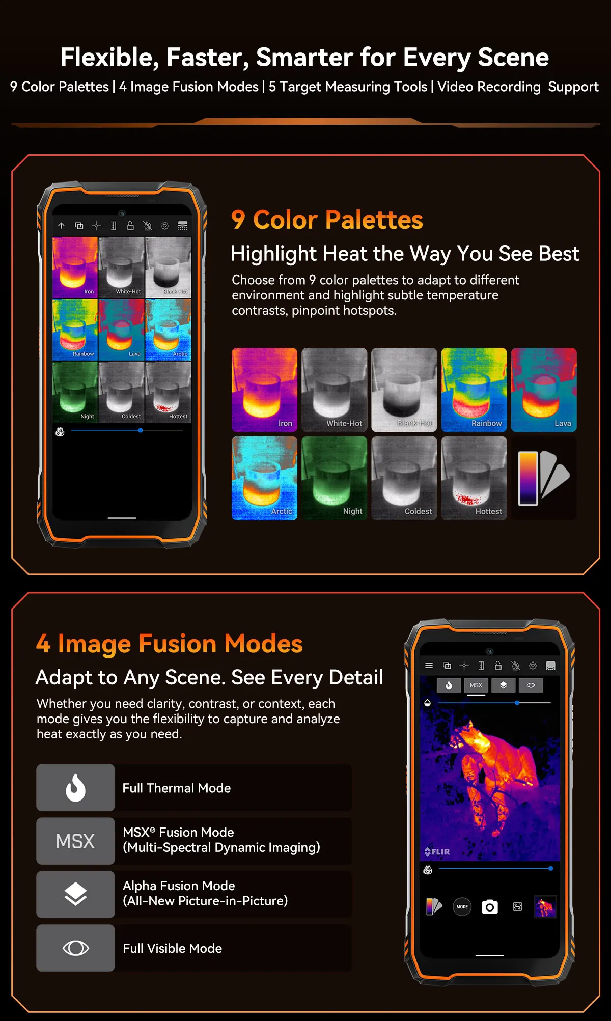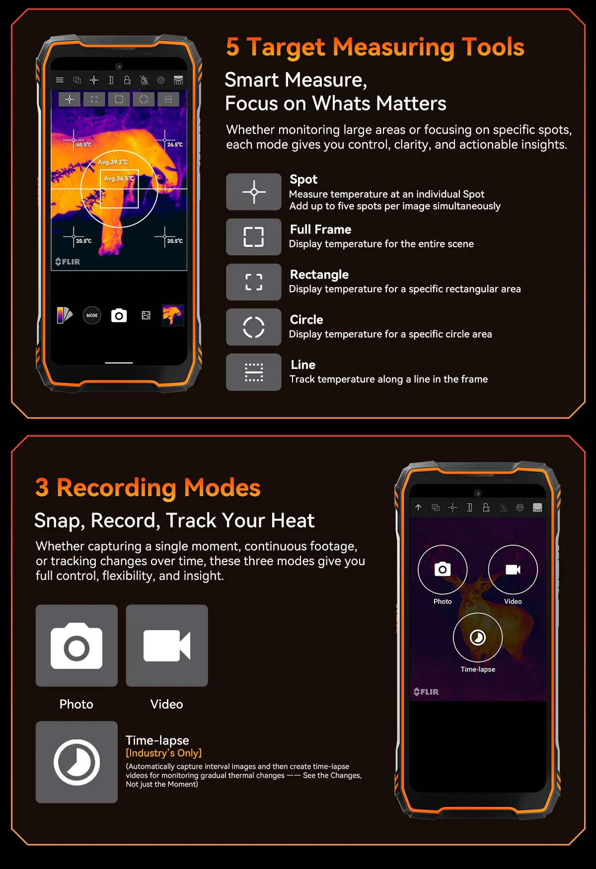 סוללה 20000MA!! מצלמה טרמית של חברת FLIR Lepton 3.5 !!! כולל מסך אחורי 2 אינץ'!!! פנס חזק ביותר!!!