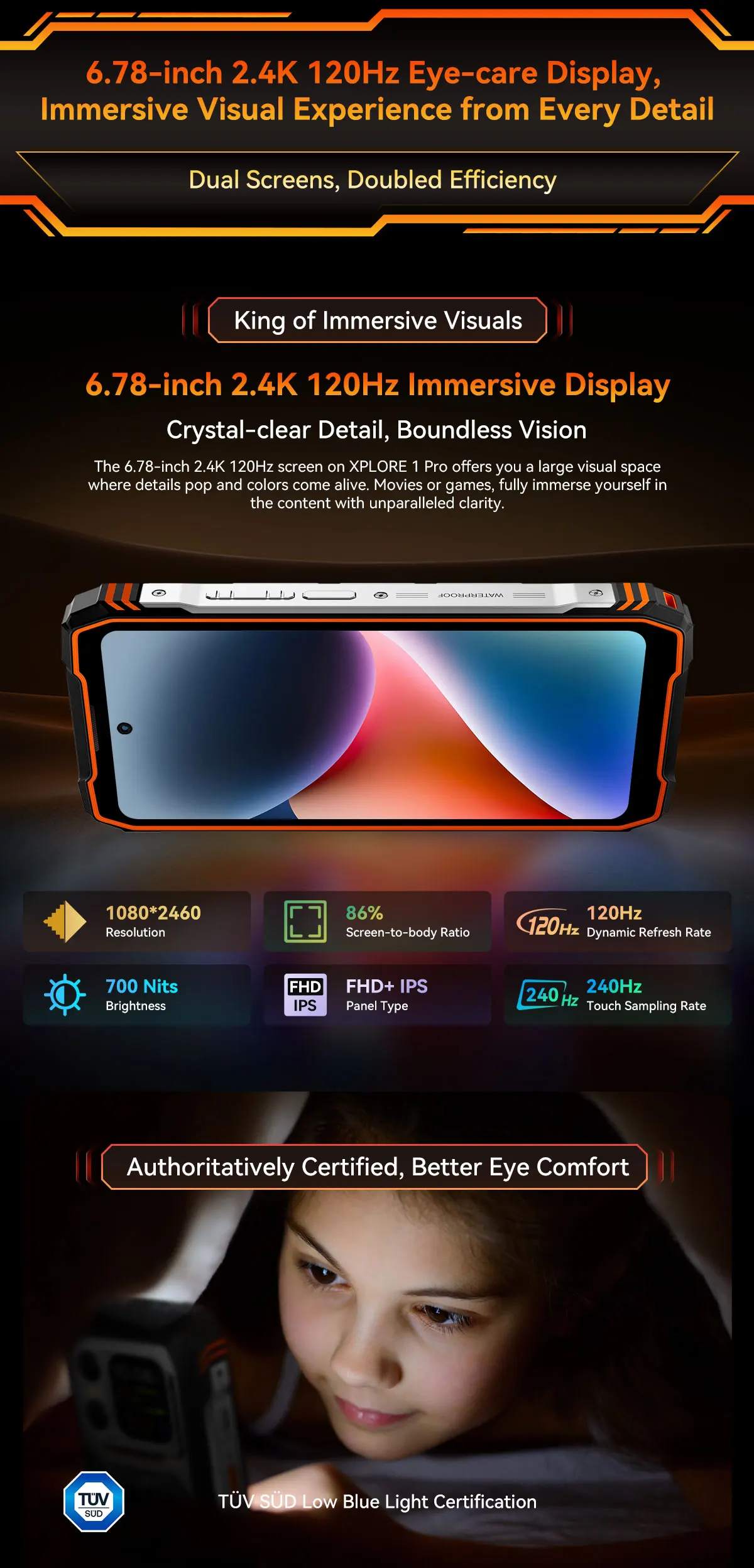 -גודל מסך: 6.78" 1080*2460 21:9 IPS הרץ 120Hz