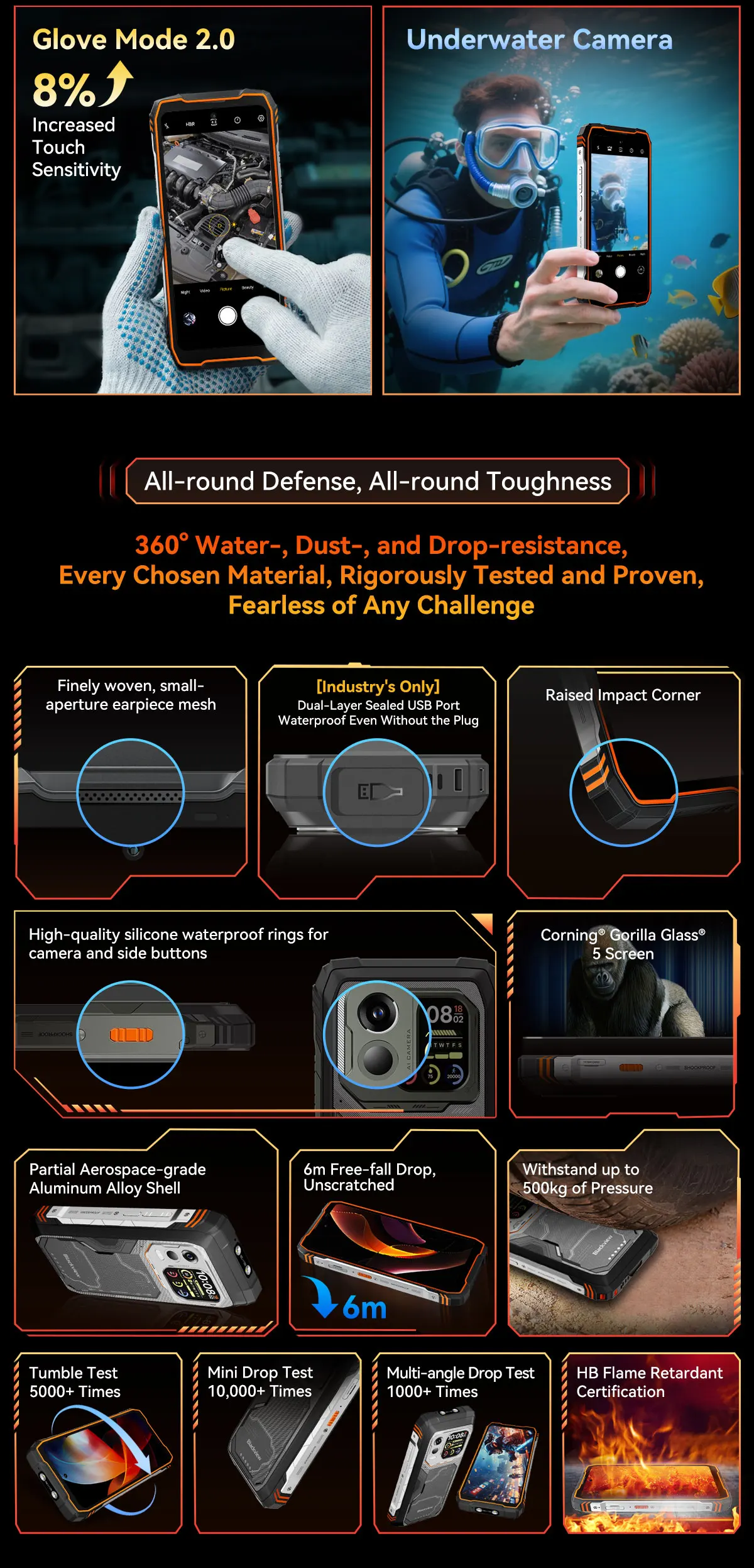 מסך גורילה 5 -תקן IP-69/IP 68 -תקן קשיחות צבאי STD-810G-עמיד יותר למים* ,אבק*,שברים*